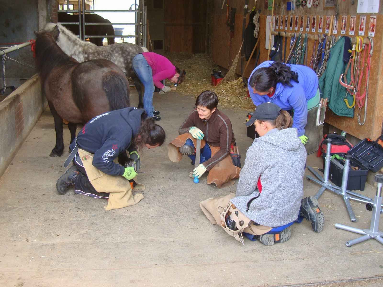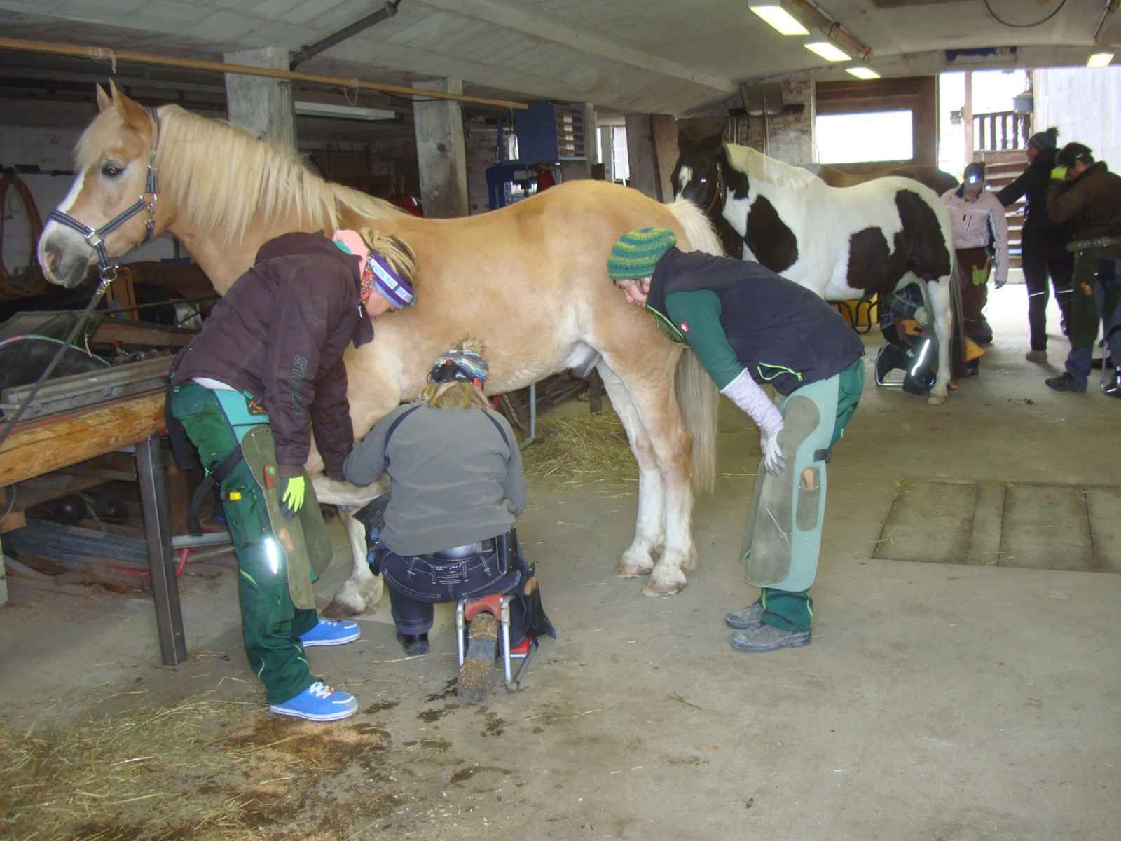 | Hufe befunden, Belastungssituation während der Standbeinphase | Angehende Huforthopäden/innen bei der Arbeit |