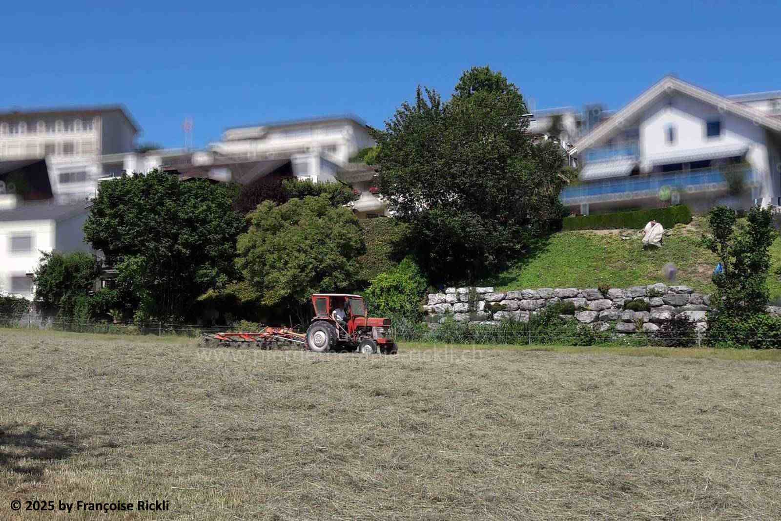Da wir für unsere Ökowiese einen flexiblen Schnittzeitpunkt definiert haben, können wir (bei guten Wetter) auch frühzeitig mähen bzw. heuen. |